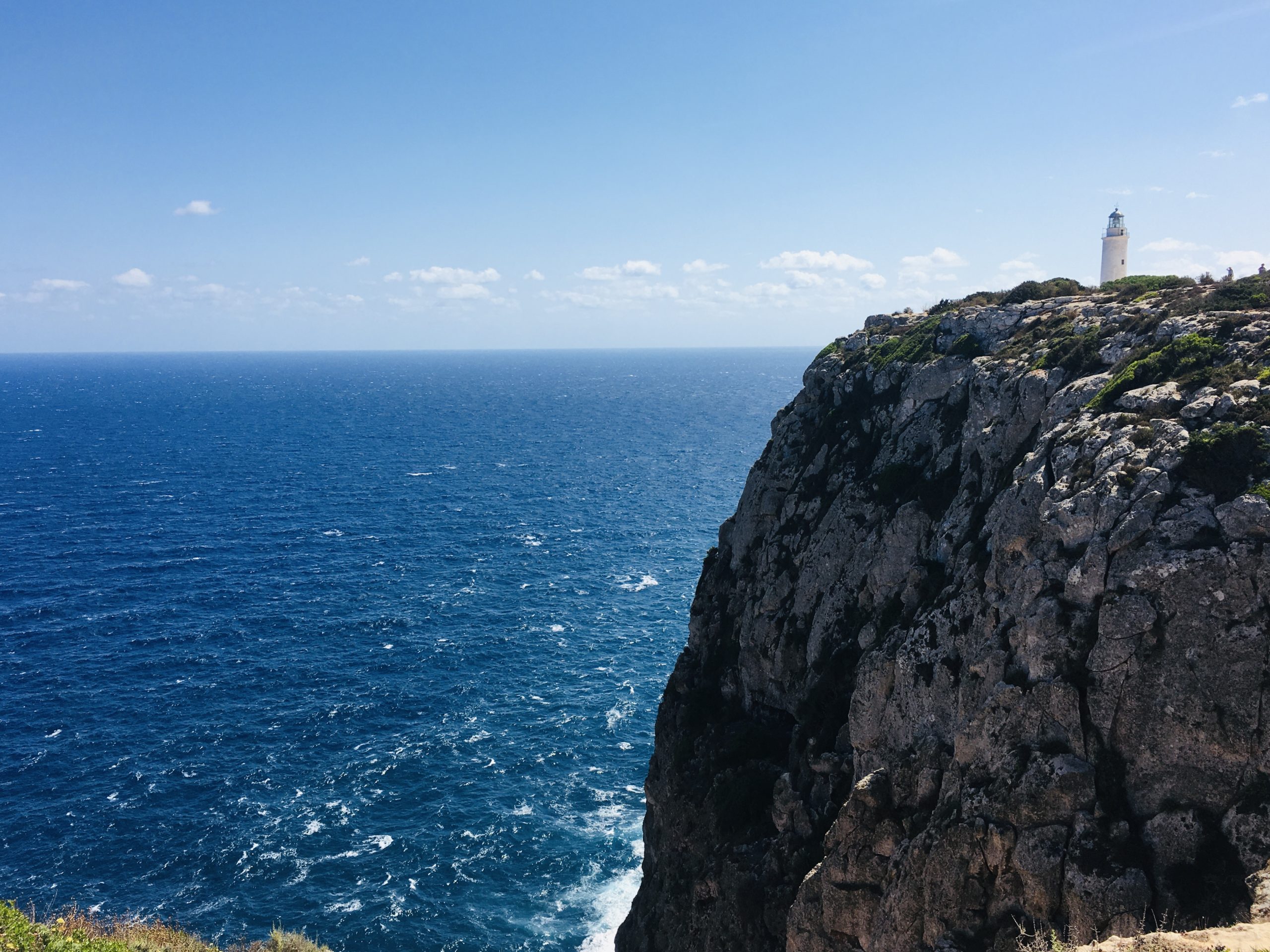 El primer lugar de Yoga en Formentera con que voy a empezar mi lista es el Faro de la Mola. La vista y el espectáculo desde sus acantilados es impresionante; el lugar está rodeado por el silencio y la naturaleza salvaje. El faro se encuentra en la punta al sur-este de la isla, así que una sesión de Yoga viendo nacer el sol desde aquí es una de las experiencias más increíbles que puedas hacer. También por la tarde hacer Yoga aquí es algo único, en un lugar aislado y sin ruido. Mi rincón favorito se encuentra a unos pocos minutos del faro. Aquí la energía es distinta, tu actitud cambia, el entorno te envuelve. En las sesiones de Yoga las gaviotas volan suaves delante de ti, sobre un azul sin limites. Tu sesión de Yoga terminará con una relajación, rodeado por la grandiosidad del mar y del cielo.